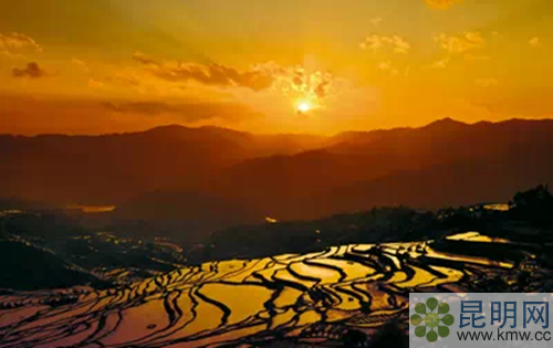 日出的梯田格外漂亮,那金色的陽光斜射在水面上反射出的光線像鋪上了一層金箔。遠遠望去,整座山的梯田,層層疊疊四千多級,精致,恢弘,仿佛一道道天梯從山頂垂掛下來直抵山腳。每一層都是一道細碎精巧的漣漪,每一疊都是一片清凈如鱗的波紋。當天光飄蕩在層層水波之上,金色的碎片綴滿山體,滿山流光溢彩,令人醉心其中。據說冬天的撒瑪壩最受攝影家的青睞,只因變化萬千的浮光掠影能最大程度激發人的創造力。
