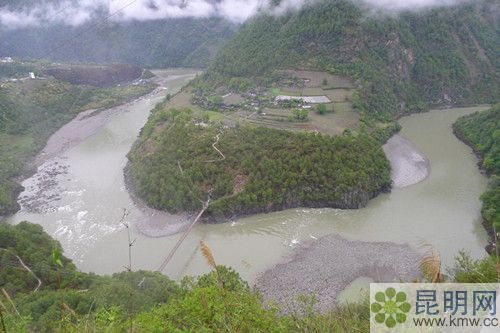 全長1540公里的怒江自青藏高原穿山越谷而來,在滇藏交界處的云南省貢山獨龍族怒族自治縣丙中洛附近轉了個半圓形的彎,被稱為怒江第一灣。這里的江面海拔約1700多米,氣勢磅礴,風光旖旎,水勢緩慢,兩岸風景獨好。東西往來的人常在此泛舟或坐溜索過江。