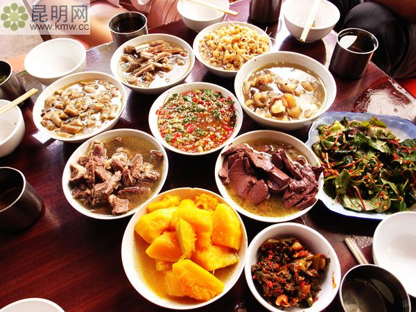 大鍋煮肉,大塊吃肉,配上能辣得冒汗的作料,就一口包谷酒,可以吃出馬幫漢子的豪氣。