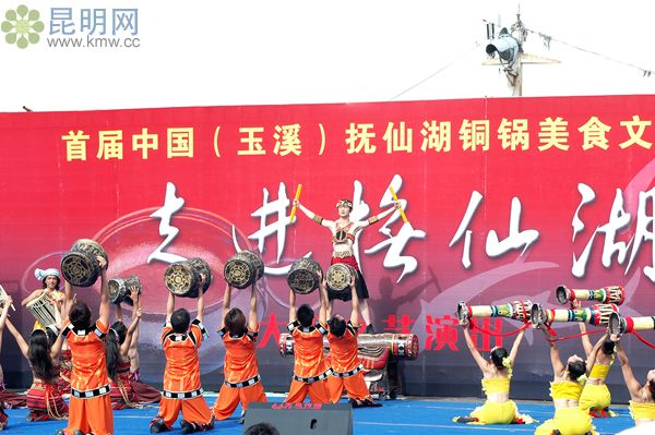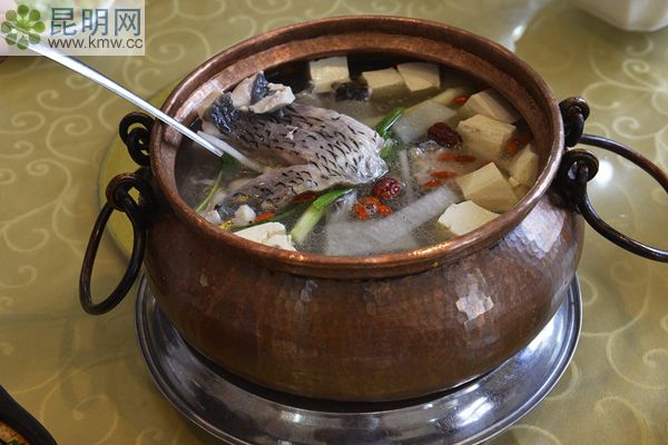 到澄江撫仙湖旅游必吃的美味,銅鍋煮魚,鮮嫩的魚肉配上辣醬,誘人食欲。