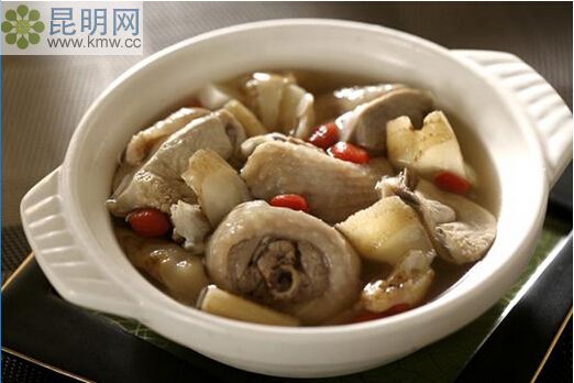 平肝熄風、祛風止痛。制作方法:將天麻洗凈,生姜洗凈切絲,0雞殺后去毛及內臟,填入天麻片和姜絲于雞腹中,放入燉鍋,加清水適量,武火煮沸,再改用文火燉至雞熟爛即可。