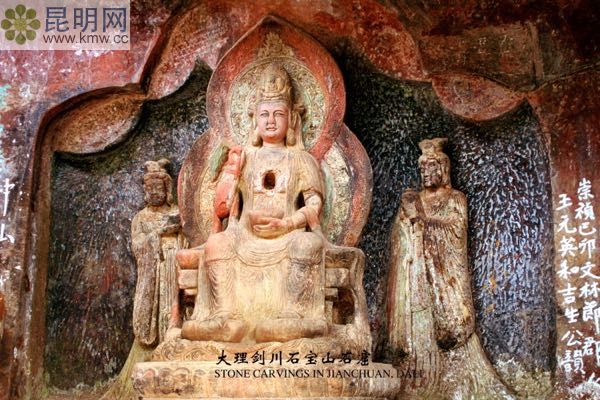距劍川縣城(西南)約25公里,有唐朝南詔國時期的石窟群,有威嚴的南詔王室造像、佛教天王造像和神秘的白族“阿央白”崇拜等遺跡,石寶山石窟是劍川石雕藝術的精華。50元/人,0872-4787029。