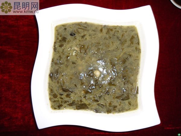 白語稱“得勒姆資”,劍川白族風味小吃,是用“蠶豆母豆葉加豆米子”相煮而成。“母子相會湯“味獨特,清香可口,鮮嫩可口,還有清涼解毒之效。