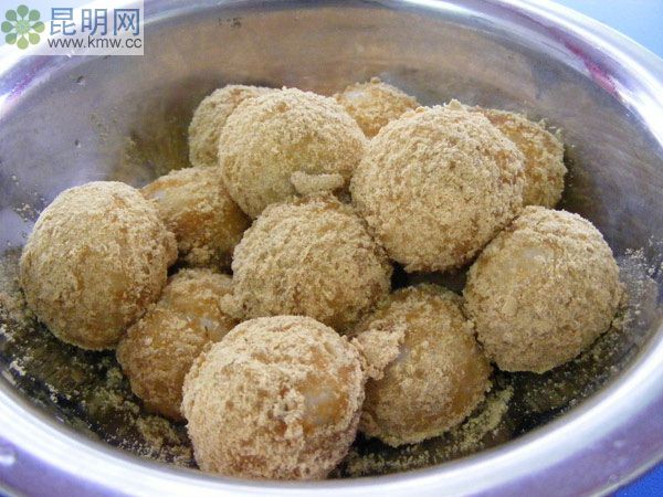 云州就是云縣。“馬打滾”為云縣傳統小吃,主料為臘面,揉成餅狀后油炸,再加上黃豆末和白砂糖“打滾”后大功告成。“馬打滾”既有黃豆末的香味,又有臘面的嫩軟,還有砂糖的甜蜜。