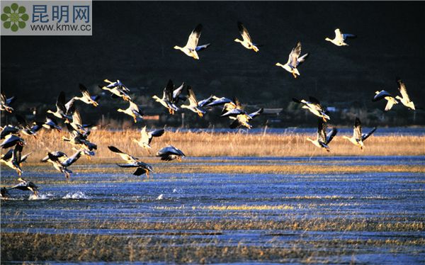 位于玉龍縣以西13KM處的拉市鄉壩中部。這里共有鳥類57種,每年來此越冬的鳥類有3萬只左右,冬季的傍晚和早晨是觀鳥的最好時段,可乘船到湖中心觀賞。有柏油路可達景區。門票:30元/人。