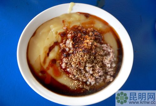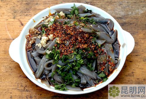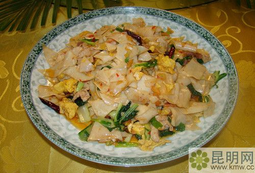 宣威火腿、沾益辣子雞、蒸餌絲、炸洋芋(土豆)。