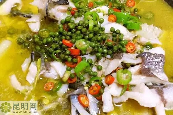 花椒魚片以魚肉為主料,花椒為輔料。濃郁的麻香氣息才是它真正的招牌。湯底里還有脆脆的萵筍片和清爽的金針菇,非常爽口。